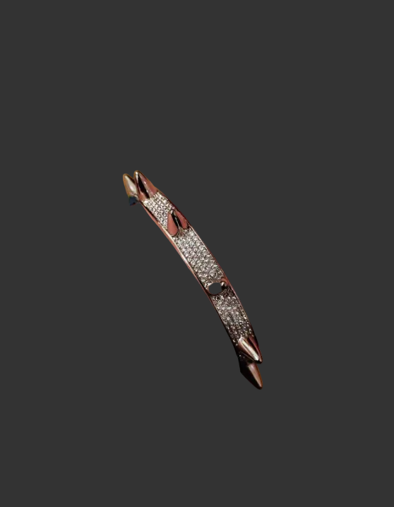 Bracelet constructed with segmented metal elements and pointed end detailing. Features a rigid structure with articulated sections and a uniform metal finish. Designed to wrap the wrist with balanced weight and a low-profile clasp.